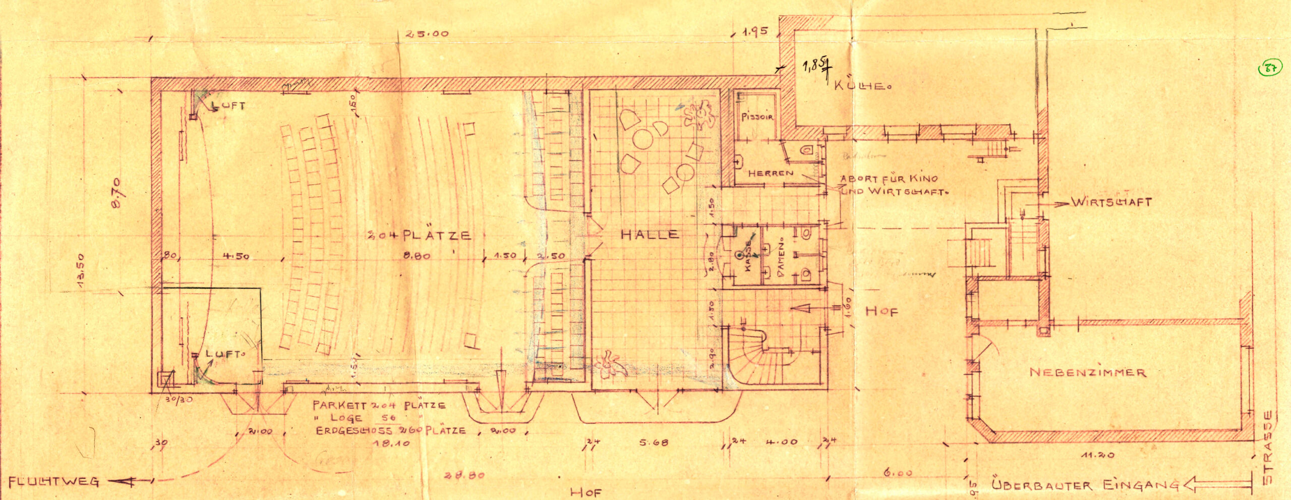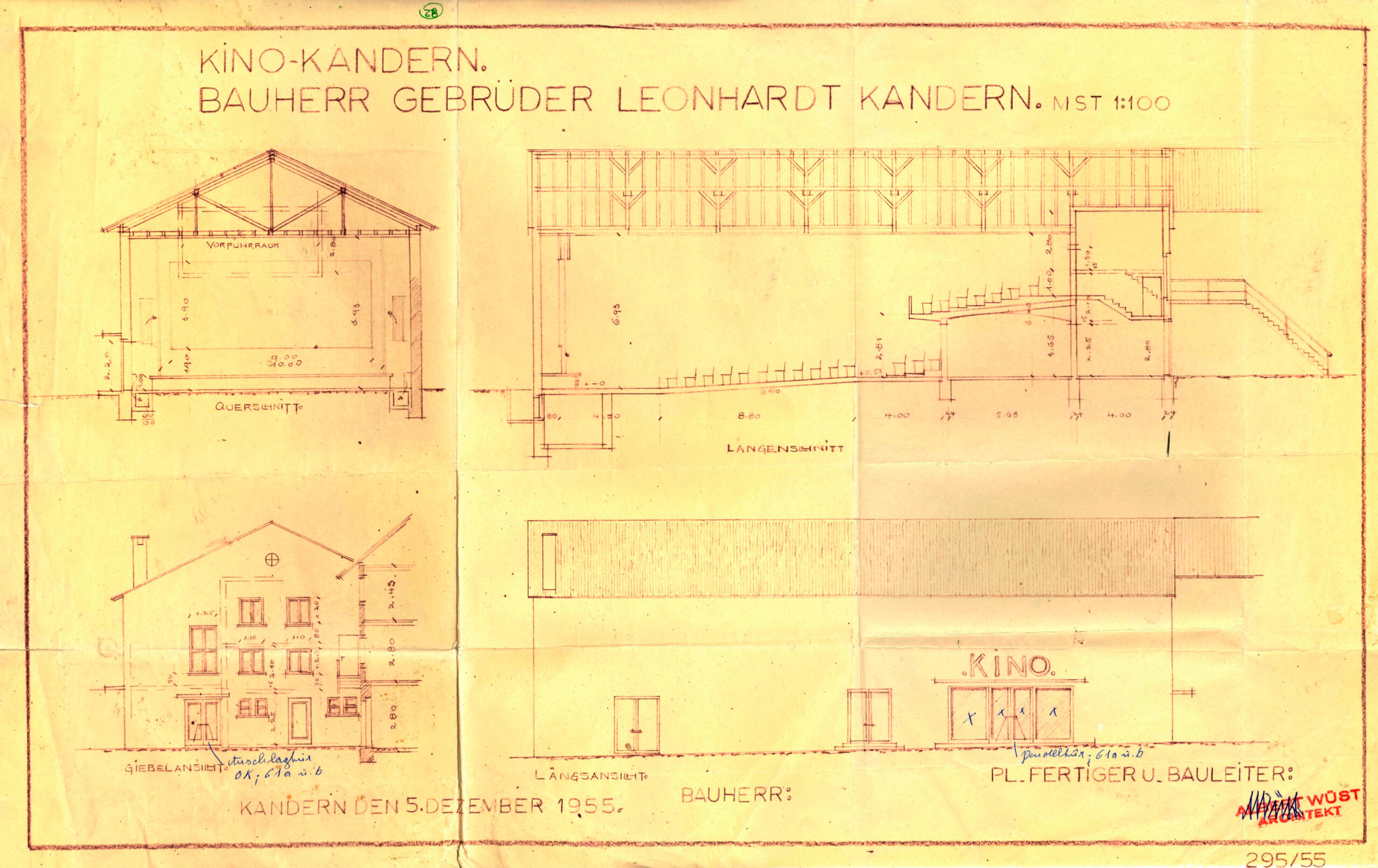 November/ Dezember 1955 Erste Baupläne des geplanten Kinobaus liegen vor
